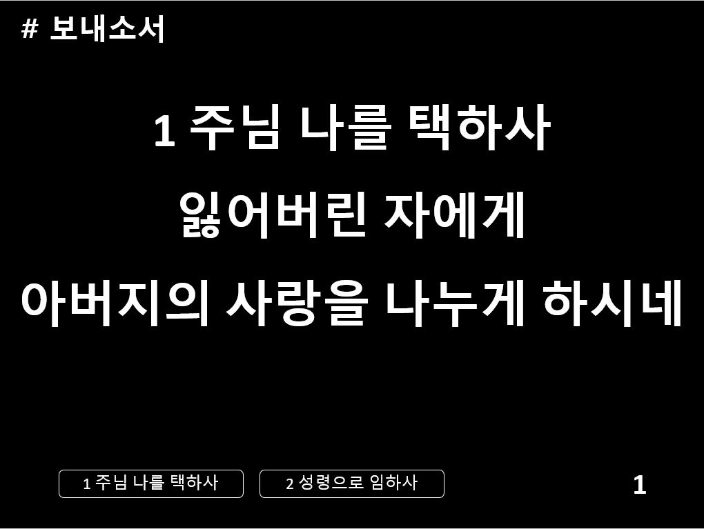 1. 주님 나를 택하사 잃어버린 자에게 |